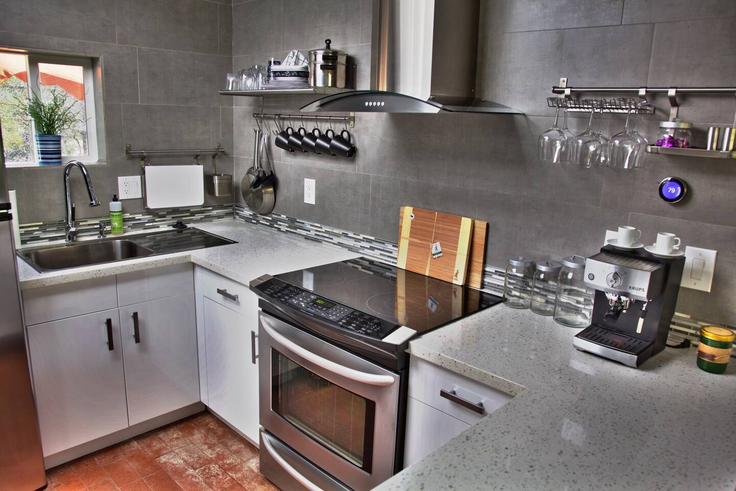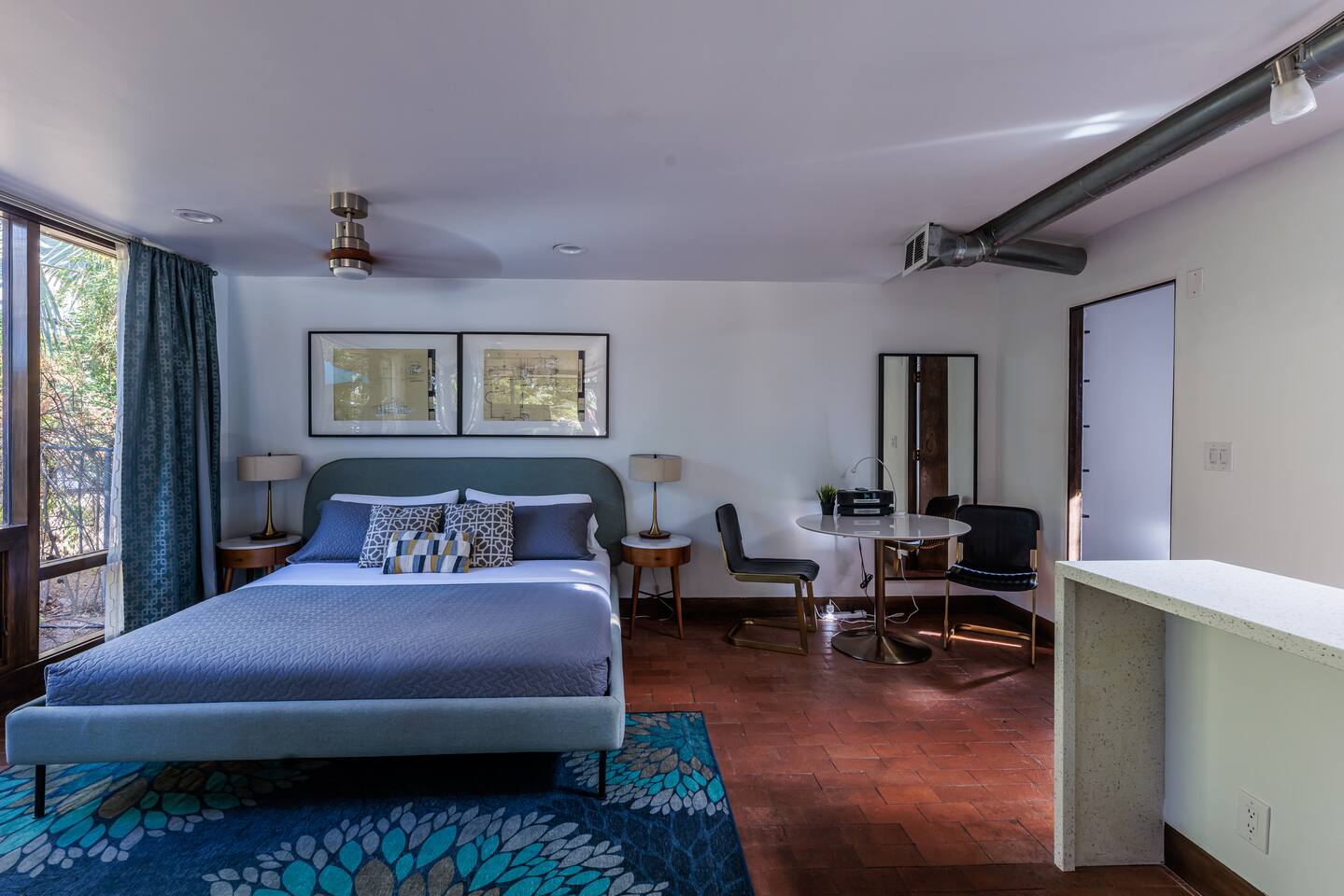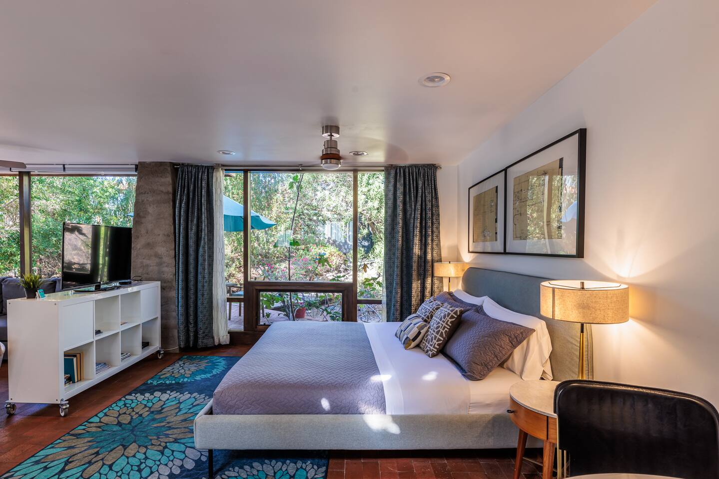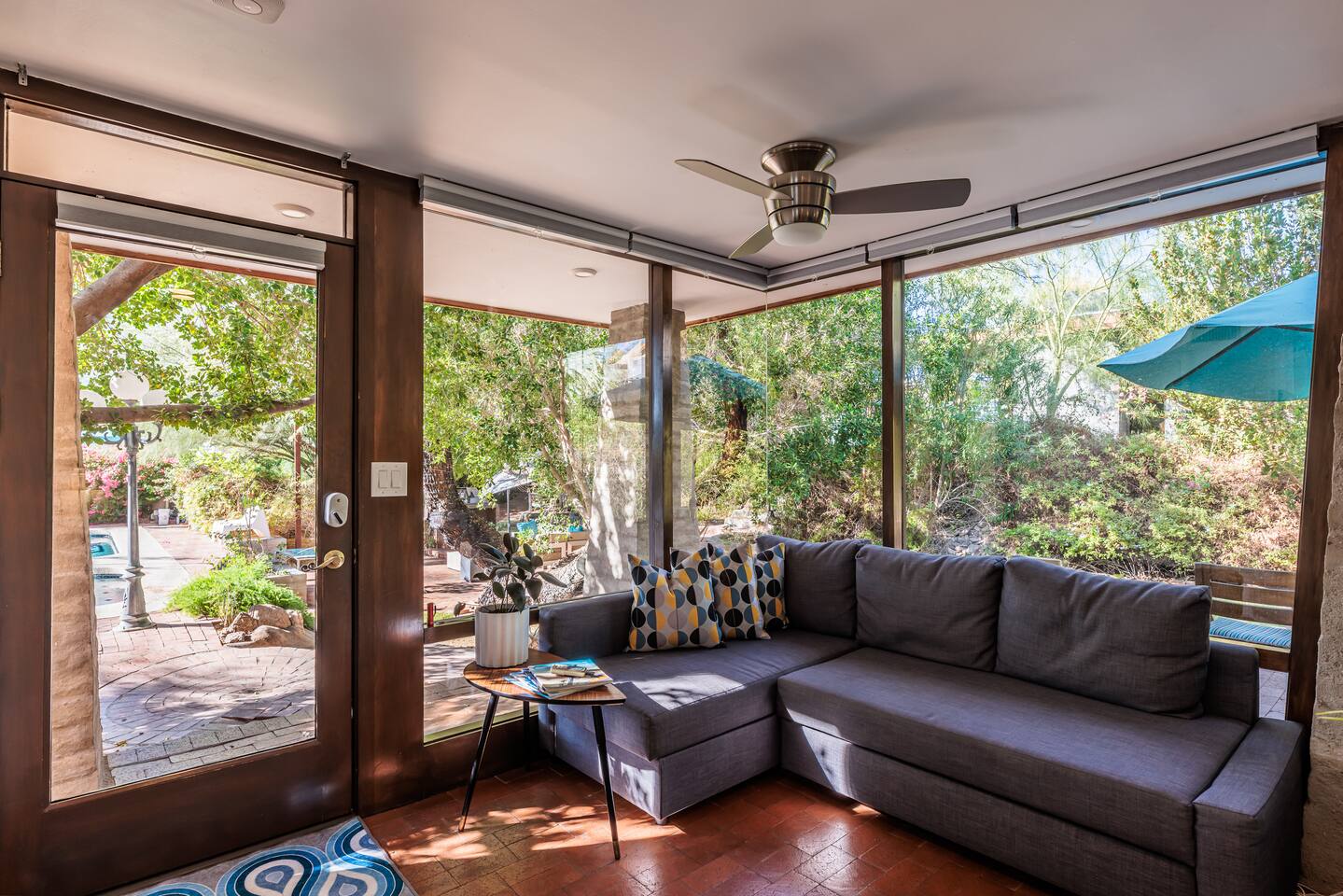For two decades the Studio was the creative space of the Wrightsian architect who designed and built our beautiful, unique property. In January 2014 we converted his architectural studio to a luxurious and private living space by adding a full bathroom and kitchen, modern day amenities and new furniture. Look for us online: #VillaParadisoPhoenix Permit STR-2025-001825