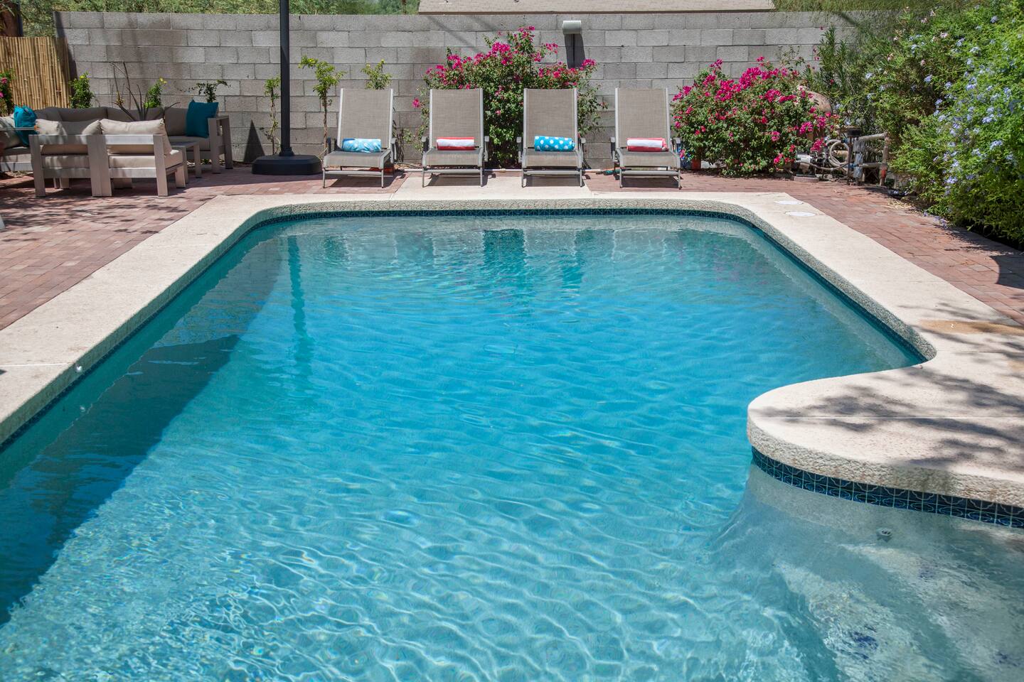 The Studio guest house has a private entrance and patio and is surrounded by lots of green and flowers and a private swimming pool. Free washer and drier are available in the large walk in closet. Free wifi and HDTV with streaming HBO, Showtime, Netflix, etc. make the Studio the perfect place to stay whether you're on vacation in Phoenix, visiting to attend an event on here on business.