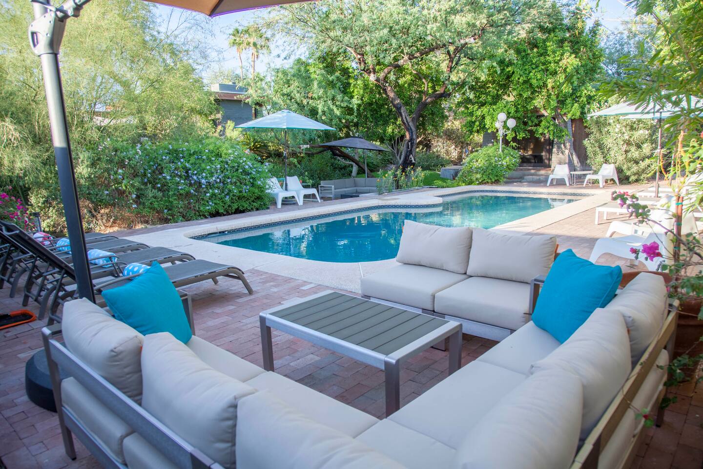 * Private, bright guesthouse immersed in a peaceful oasis of lush landscaping. The guesthouse is right in front of our swimming pool. * Fully remodeled: Kitchen, TV, Wifi, Nespresso & more. * Central location: 10 mins from Old Town Scottsdale, ASU, Sky Harbor Airport, Spring Training & more. Check out my profile for two Luxury B&B suite listings in the main house. Private bedroom & bath, full access to living areas + breakfast. Ask about photoshoots or events across the various property areas.